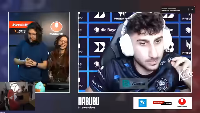 09:12:08Nach dem klaren Sieg des Teams folgt ein Interview mit dem Spieler Visie Chachi, das auf Deutsch geführt wird. Dabei wird der Teamfokus und die Synergie betont. Es wird erklärt, dass ein etabliertes Team mit erfahrenen Spielern Vorteile hat, da es nicht ständig umstrukturiert werden muss. Des Weiteren wird diskutiert, welche Spielerpositionen innerhalb des Teams als stärker oder schwächer wahrgenommen werden, wobei der Pyke als Spielgestalter hervorgehoben wird, der jedoch nicht für persönliche Kills, sondern für den Teamerfolg spielte.