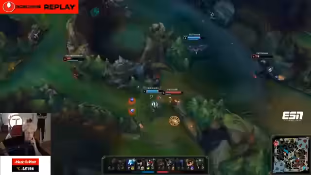 00:37:15Im Spät-Game gerät Hanwha Life nach mehreren Teamkämpfen in einen Goldrückstand. Der Streamer kritisiert Showmaker scharf für sein riskantes und gescheitertes Engage in den Schlusskämpfen. Er bezeichnet es als "Ashe-Syndrom", dass Ashe in die Frontlinie reingeht, anstatt die feindlichen Träger anzugreifen. Fehler von Seiten Hanwha Life führen dazu, dass Damwon das Spiel für sich entscheiden kann.