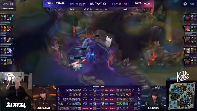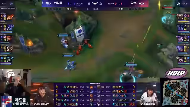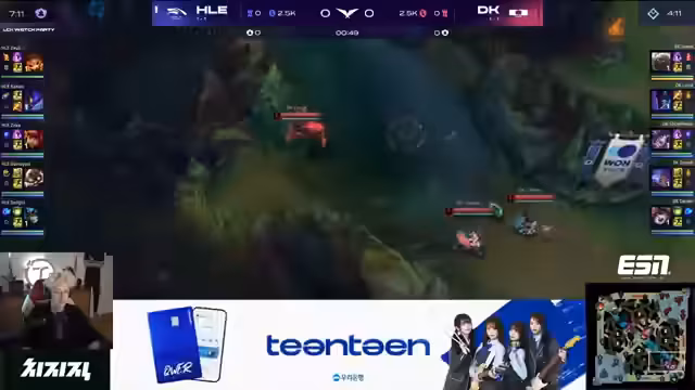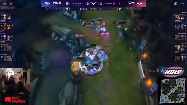 01:40:30Im Mid-Game dominiert Kanavi weiter mit seinem Kha'Zix. Er führt einen genialen Teleport-Flank aus und erzielt einen Double-Kill. Nach einem Teamfight, in dem Hanwha Life den Mountain Drake holt, hat das Team einen massiven Goldvorteil. Trotzdem zeigt der Kommentator Bedenken, da Hanwha Life kaum Frontline besitzt und sich kleine Fehler schnell strafbar erweisen können. Showmaker als Syndra hat jedoch das Potenzial, das Spiel allein zu tragen, falls er Gold und farmen kann.