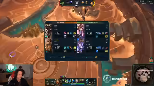 06:20:04Das Stream-Event wechselt zur Arena-Lobby. Es ist ein 16-Spieler-Turnier geplant, bei dem die Teilnehmer in Teams aufgeteilt werden. Es werden Partner zugewiesen, und die Regeln wie Bravery (zufällige Champions) werden erklärt. Die Teamfindung gestaltet sich etwas chaotisch, da ein Teilnehmer fehlt und gefüllt werden muss. Die Lobby wird mit Rollen und Items für die Runden vorbereitet.