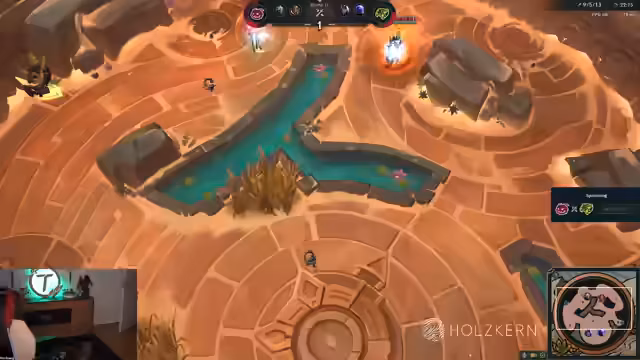 06:46:35Im Mid-Game der Arena-Runde ist die Kontrolle über die Honeyfood-Spawns entscheidend. Das Team plant, zwei von drei Honeyfoods zu kontrollieren, um den Gegner unter Druck zu setzen. Der primäre Fokus liegt auf dem Kill von Kog'Maw oder Swain, während man versucht, den Honeyfood-Spawn oben zu nutzen. Die Positionierung ist entscheidend, um aus Honeyfoods und Teamfights den maximalen Nutzen zu ziehen.