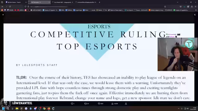 09:54:11Nach einem knappen Sieg in der Partie kritisiert der Streamer das Verhalten von E-Sport-Teams, insbesondere Top-E-Sports, und wirft ihnen mangelnden Ernsthaftigkeit vor. Die Diskussion erweitert sich zu einem Vergleich der E-Sport-Szenen zwischen China und Europa, wobei er die Performance der chinesischen Teams in Frage stellt und die überlegene Kultur Koreas hervorhebt. Dies zeigt seine tiefe Involviertheit und kritische Haltung im Profi-E-Sport.
