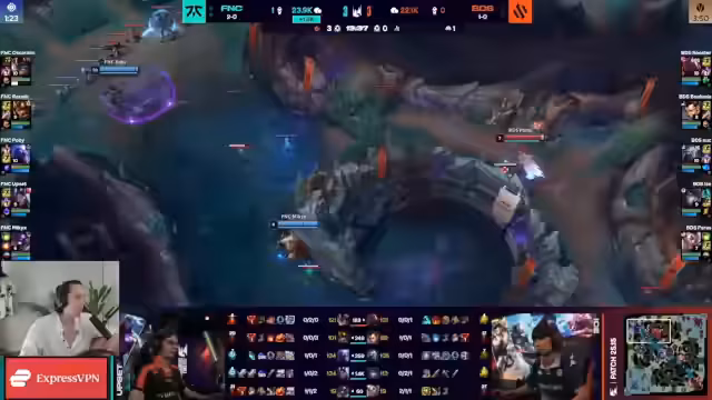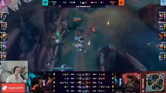 00:36:26Der Streamer betont die positive Stimmung um Fnatic und insbesondere die Führungsrolle von Pobi ('The Ghost'), der im Team als Shotcaller und englischsprachiger Anker fungiert. Er ist überrascht, dass auch der erfahrene Spieler Upset auf Pobis Anweisungen hört. Im Spiel selbst gibt es ein frühes Todesereignis am Bot-Lane, als Bds' Alistar Paro mit einem Knock-Up trifft und ihn so verwundbar macht. Der Chat ist gespalten, wie man mit Knock-Ums umgeht, da dies nur mit QSS, aber nicht mit Cleanse aufhebbar ist.