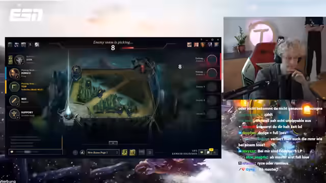 12:36:43Ein entscheidender Fehler wird im Early-Game von Los Ratones begangen. Beim Versuch, den Blue-Buff von Mundo zu invadieren, verliert dieser ein Duell gegen Elioja. Dies führt zum First Blood für den Gegner und stellt Veljis Jungle stark in Frage. Dieser Fehler setzt eine Kette von negativen Ereignissen in Gang und führt zu einer frühen Gold-Differenz, aus der sich das Team nach Ansicht des Streamers kaum mehr erholen kann.