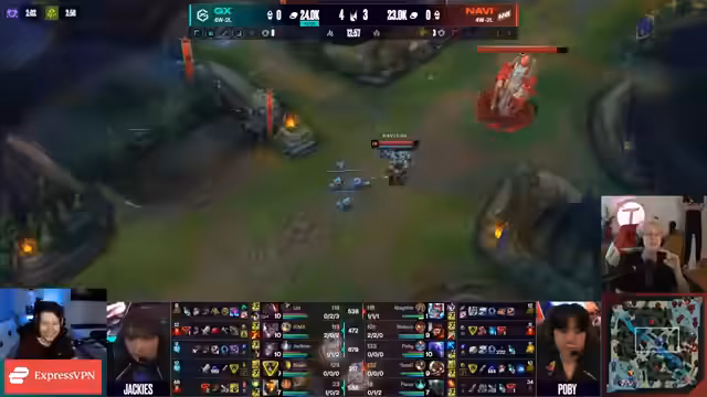 09:13:30Ein Kampf entbrennt, der in einem 2-zu-3-Tausch endet. Navi nutzt mehrere Park Resets, um das Gold auszugleichen. Der drote Drake fällt, und mit dem Zusammenbruch der Frontline-Turrets beginnt das Endgame. Die Spielsituation ist weiterhin offen, da beide Teams versuchen, ihre Power Spikes umzusetzen. Navi ist im unter Druck, da sie einen Helden verloren hat und weiterhin aggressives, aber nicht immer erfolgreiches Playmaking betreibt.
