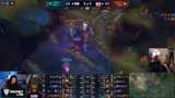 11:18:58Ein Teamfight eskaliert zu einem der highlightreichsten Momente des Spiels. Die Carries von G2, Hans Sama und Caps, stehen unter schwerem Druck, doch Hans Sama wendet eine geniale Kombination mit seiner Ultimativen und seinem Flash an. Dabei eliminiert er gegnerische Champs und greift den gegnerischen Jungler an. Als Ergebnis erhält Hans Sama einen Quadra-Kill und hat die Chance, als letzter verbliebener Spieler, für den fünften Kill zu gehen. Dies unterstreicht seine dominante Performance und sichert G2 einen wichtigen Punkt.