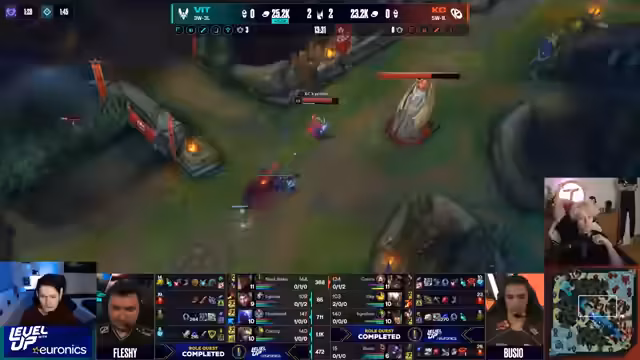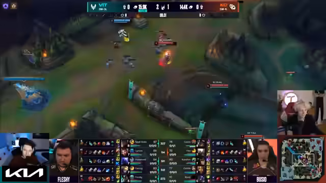 12:03:57Es wird die herausragende Leistung von Kasi und Juno von Vitality gelobt, die als Freundespaar synergistisch spielen und das Team 'gebufft durch die Macht der Freundschaft' erscheinen lassen. Ihr Spielstil wird als 'cleanest League of Legends' beschrieben, bei dem sie proaktiv Ziele anvisieren und Goldvorteile in den Mittelspiel und spätes Spiel übertragen. Gleichzeitig wird die Schwäche von Casey in der Bot-Lane thematisiert, die durch Kills (0-3-0) weiter geschwächt wird.