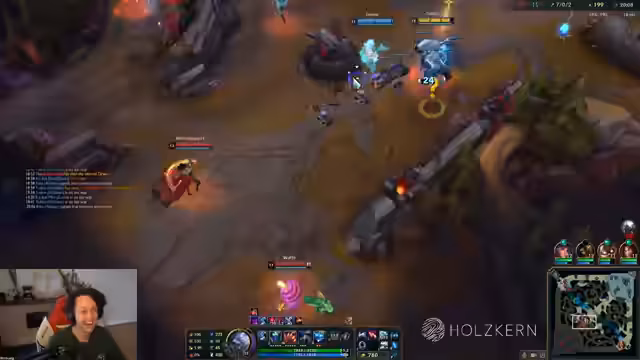 07:27:44Der Nashor wird als Ziel ausgegeben, obwohl die Zeit als zu früh empfunden wird. Ein Teammitglied ist als Ablenkung vorgesehen, während der Streamer und ein weiteres Mitglied den Nashor angreifen. Die Situation wird durch plötzliches Eingreifen des Gegners kompliziert, was zu einem Chaos im Team führt.