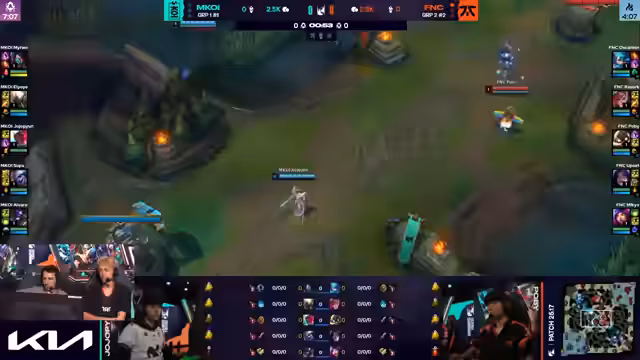 02:11:57Fnatic's Teamkämpfe waren komplett unsynchron, was zu Problemen führte. Alva überlebte knapp dank einer passiven Fähigkeit, während Atakan starb. Morbius dominierte für Fnatic. Es gab Schwierigkeiten mit dem Timing der Gates, wobei die einzelnen Teammitglieder nacheinander reingingen. Mervin machte einen großen Fehler, da er keine Informationen über die Positionen von Kai'Sa, Vi und Quen hatte, als er sich entschied, eine Wave zu nehmen. Toplane war in einer starken Position, aber Mervins Fehler kostete Mobistar viel, da sie Zeit und Druck auf der Karte verloren. Dieser Tod verzögerte das Spiel unnötig und gab Kai'Sa einen Vorteil mit 900 Gold und drei Items. Die Analyse deutet darauf hin, dass das Team, das den Attacker startet, oft verliert, was die anfängliche Kritik rechtfertigt.