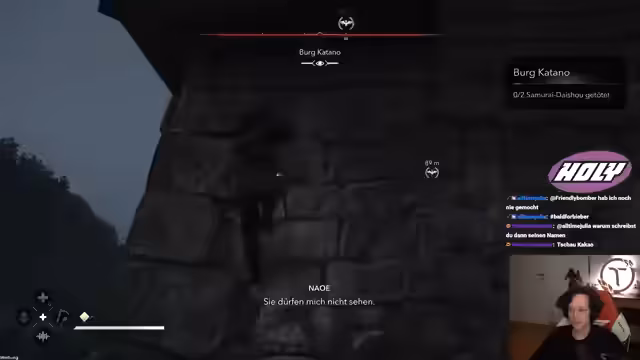 04:10:08Zunächst konzentriert sich der Streamer auf eine passive Quest, die nebenbei erledigt werden soll, während er sich dem Weg des Schmiedes widmet. Er spricht mit Heiji, der sich östlich des Hafens von Sakai befinden soll, wo es aufgrund des Regens wie ausgestorben ist. Der Streamer sucht nach Schmugglern, um Ressourcen zu looten, und überlegt, wie er mehr Schmuggler rekrutieren kann. Er erinnert sich an Assassin's Creed Black Flag und vergleicht es mit der aktuellen Situation. Der Streamer kapert ein Schiff der Europäer, die mit Japan Handel treiben und das Christentum verbreiten wollen. Er klettert auf ein Kabuto und nimmt den mühsamen Aufstieg nach oben auf sich.