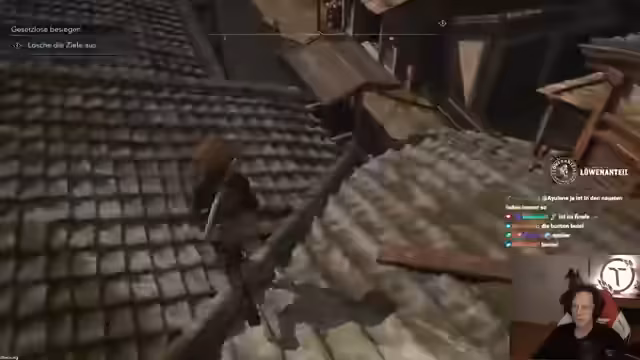 03:49:13Es werden verschiedene Themen angesprochen, die von persönlichen Anekdoten bis hin zu Beobachtungen aus dem Chat reichen. Es wird über die Haare gesprochen und wie sie im Gesicht liegen, was zu humorvollen Kommentaren führt. Es wird auch über die Bedeutung von Familie und Freunden gesprochen, wobei der Begriff "Sohn" als Ausdruck der Zuneigung verwendet wird. Es wird auch über die Reaktionen von Frauen auf bestimmte Blicke und Narben gesprochen. Es wird weiterhin ein Assassin's Creed Gameplay beschrieben, wobei der Fokus auf humorvollen Kommentaren und Interaktionen liegt. Der Charakter tötet weiterhin Wachen und versucht, unentdeckt zu bleiben, während er nach Informationen sucht. Es werden auch Fragen an den Chat gestellt, z.B. wie man reagieren würde, wenn man von einer wütenden Frau angegriffen wird. Es wird auch über die KI der Gegner gelästert, die oft unlogisch reagieren. Der Charakter versucht, einen Schlüssel zu finden, um ein Geldwechslerviertel auszunehmen, und interagiert mit verschiedenen Charakteren, um Informationen zu sammeln. Es wird auch über die Schwierigkeit diskutiert, bestimmte Orte zu finden und Quests zu erfüllen. Abschließend wird festgestellt, dass das Spiel den Charakter nicht finden lassen will, wonach er sucht.
