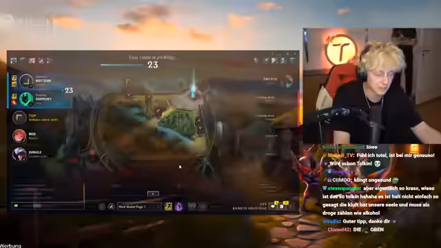 04:29:13Der Streamer gibt Tipps für den Midlane-Champion Echo, dessen er großer Fan ist. Er rät dazu, durchgehend mit Q zu pushen und im Early Game so wenig wie möglich zu interagieren. Er erwähnt Hale of Blades als potenziellen Cheese. Gleichzeitig äußert er seine starke Präferenz für andere Rollen als Top, da er trotz besserer Fähigkeiten keine Freude am Spielen dieser Rolle hat. Er erklärt, dass er aufgrund seiner Beliebtheit oft in Top autofilled wird und dies nur akzeptiert, da es nicht ständig vorkommt.
