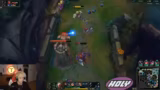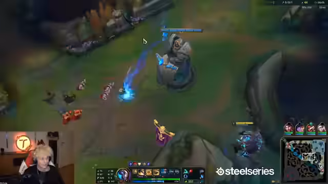 05:43:18Die Lane-Prio ist entscheidend für das weitere Spielgeschehen. Durch cleveres Sidestepping und Egoismus wird versucht, Orianna in Panik zu versetzen und so eine Kontrolle über die Lane zu erlangen. Ein erzwungener Recall und der Verlust eines Cannon Minions werden als Rückschläge gesehen. Der gegnerische Jarvan IV ignoriert die Lane komplett, was erlaubt, die Welle kontrolliert zu pushen. Ein solides Tempo wird generiert, da Jarvan lange auf dem Jungle-Camp bleibt und nicht eingreifen kann.