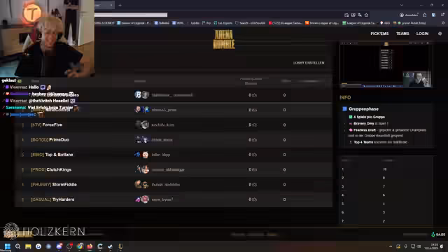 00:31:23Der Streamer erklärt das Format des Arena-Turniers. Die Teilnehmer können sich auf einer Website über Gruppen und Turnierbaum informieren. Die Regeln und Pickems sollen ignoriert werden, da die Punkte automatisch getrackt werden. Das Spielsystem ist 'Checkmate 31', bei dem Teams Punkte durch Platzierungen in den Runden sammeln. Der erste Platz gibt 10 Punkte, der letzte einen Punkt. Sobald ein Team 31 Punkte erreicht hat, muss es noch einmal den ersten Platz belegen, um zu gewinnen. Dies soll sicherstellen, dass jedes Team jederzeit noch gewinnen kann. Es wird im Modus 'Full Bravery' gespielt, und das Bannen von Champions ist erlaubt, um unliebsame Charaktere wie Yummi zu vermeiden. Technische Probleme mit dem Discord RTC werden behoben, und die Stimmung vor dem Turnier ist positiv. Der Streamer bittet den Chat um Hilfe und Backseat-Gaming für Augment-Tipps, da er selbst nicht alle Tierlisten auswendig kennt. Er vertraut auf die Expertise bestimmter Zuschauer.