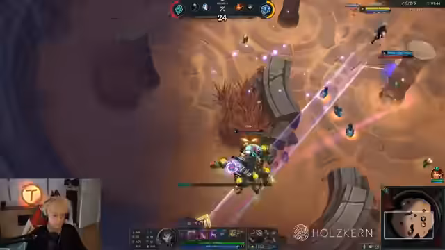 06:33:30Während des Streams wird die Zubereitung eines Nudelauflaufs gezeigt und ausführlich kommentiert. Diese Aktion dient als eine Art Ritual zur Entspannung und Konzentration. Zurück im Spiel ist der Map-State nach wie vor schwierig. Ein dicker Bounty auf dem gegnerischen ADC wird als bespielbar angesehen. Man entscheidet sich für den Aufbau von Horizon Focus und Death Cap, um langfristig Schaden zu machen. Die Map-Pressure durch den gegnerischen Top-Laner bleibt ein zentrales Problem, da man jede Wave kontested wird und man sich nicht frei bewegen kann.