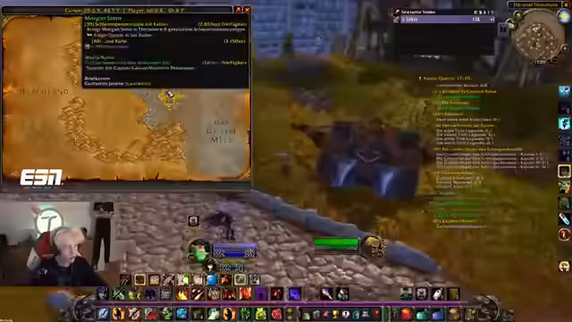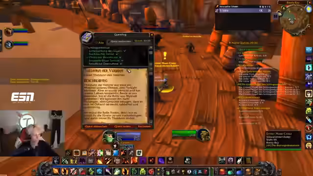 08:08:33Der Streamer sucht nach fehlenden Quest-Gegenständen (Seite 21) und erkundet Ruf-Systeme bei Fraktionen wie Danassos. Diskussion über Mount-Kosten und Ruf-Voraussetzungen entsteht - 90 Gold für Mounts bei ausreichendem Ruf. Die Gruppe sucht weiter nach Elite-Monstern wie König-Bangladesch, um wertvolle Quest-Belohnungen und Fraktionsvorteile zu sichern.