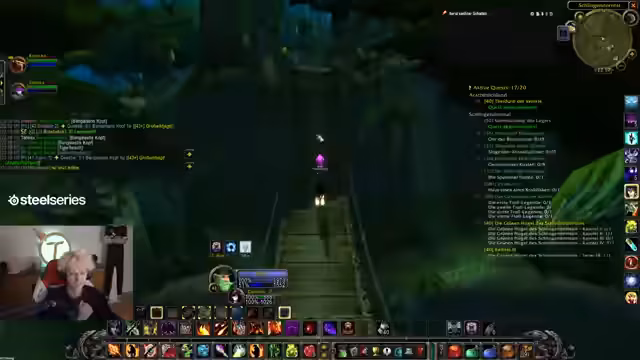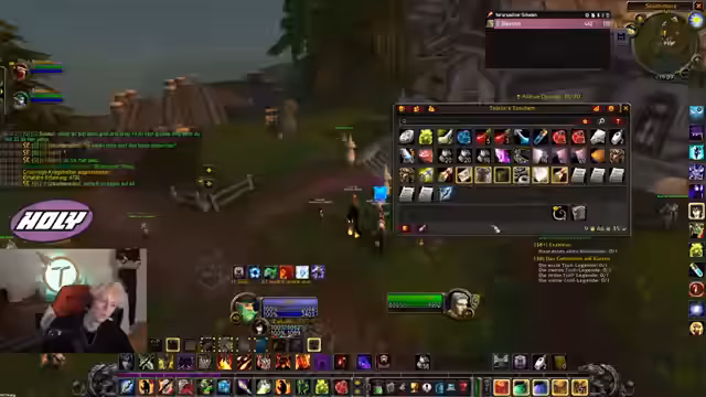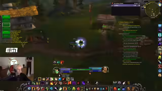 00:02:38Der Streamer beginnt mit dem klaren Ziel, heute Level 40 zu erreichen und das Pferd zu erhalten. Er erklärt, dass nicht alle Gilde-Mitglieder auf Pferden reiten können, was diese Errungenschaft besonders bedeutungsvoll macht. In der Diskussion mit dem Chat erkundet er sich nach optimalen Level-Zielen in Stranglethorn Vale und erwägt, Quests in Booty Bay im Norden anzunehmen. Später freut er sich über ein verbessertes Ausrüstungs-Upgrade: Ein Orb mit Schattenzauber-Schalen, der Intelligenz und Willenskraft bietet, sowie eine neue Kette mit Ausdauer, Beweglichkeit und Willenskraft, die sein Vorwärtskommen unterstützen soll.