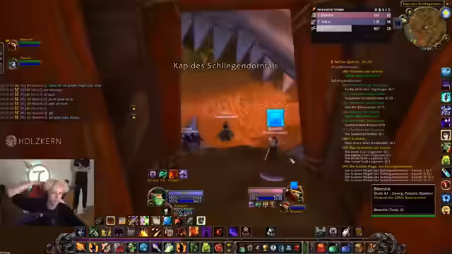 05:59:56High-Level-Spieler in Deathmine-Level haben Probleme, Gruppen zu finden, da nur wenige High-Level-Spieler vorhanden sind und Gruppen sich nicht ausreichend bilden. Mark Oliver erwähnte, dass sie easy mitlaufen für Items, ohne XP. Der Streamer hilft Leuten und unterstützt, indem er durch Deadmines für Quests und XP pusht. Er würde gerne Leute durch Dungeons führen, aber er kommt oft nicht dazu, weil er gelockt ist. Er plant, als Paladin Tank und Heiler anzubieten, um das Tank-Heiler-Problem zu adressieren, da es immer Tankmangel gibt. Er freut sich über jeden, der fragt, und bevorzugt ein Commitment von einer Stunde für Quests. Sein Ziel ist es, am Ende des Projekts Level 60 zu erreichen und im Kader zu stehen.