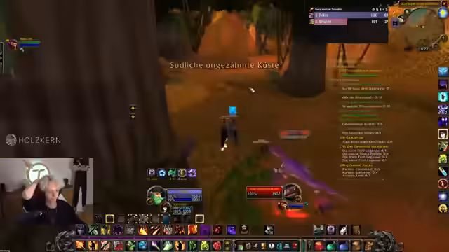 04:45:46Nach dem Porten nach South Shore diskutiert das Team Taktiken für Elitequests (z.B. Oger). Ein Spieler mit Welt-Buffs (ZG, Stormwind) zieht zu viel Aggro, was die Gruppen dynamik beeinträchtigt. Es folgen Absprachen zum Pull-Verhalten (z.B. Einzelpulls vs. Gruppenpulls) und zur Nutzung von Fähigkeiten wie dem Sukkubus-Pet. Gleichzeitig werden Buff-Zeitfenster (20 Minuten) genutzt und weitere Questziele in Ödland oder Dschungel geplant.
