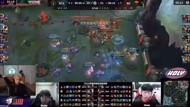 04:52:44Kingin macht kritische Fehler, die zum Verlust von Nash und Elder Drake führen, während BNFX strategische Entscheidungen trifft. Talia und Zaya werden als gefährlich im Late-Game identifiziert, und BNK nutzt dies, um Vorteile zu erzielen. Trotz guter Plays von Kallix und zahlenmäßig Überlegenheit verliert Nongshim das Game nach 50 Minuten. BNK gewinnt mit drittem Elder Drake und Nash, während Kallix trotz starker Leistung das Game nicht retten kann. Das Spiel endet mit Rise Group Baby.