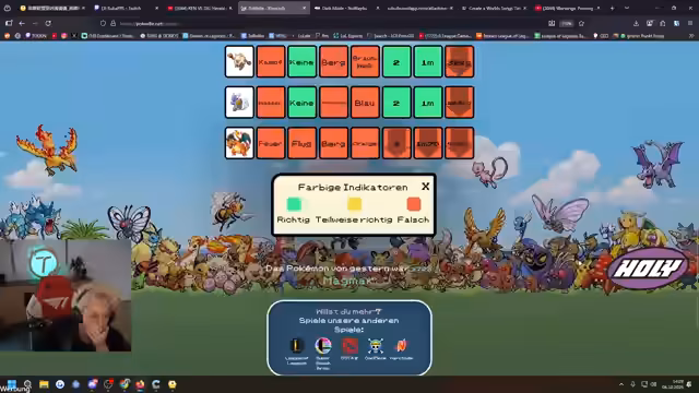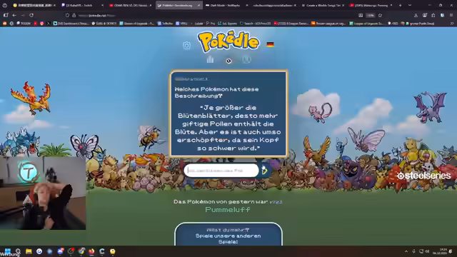 06:11:02Der Streamer diskutiert intensiv über ein Pokémon mit den Eigenschaften 1 Meter groß, Level 2, nicht Wasser, Feuer oder Flug. Es gibt Spekulationen über mögliche Pokémon mit diesen Eigenschaften, darunter Knogger, Radikal und andere Kandidaten. Der Streamer ist unsicher über die genaue Identität des Pokémon und beginnt, die Auswahl durchzugehen. Die Chat-Interaktion spielt eine wichtige Rolle bei der Entscheidungsfindung. Der Streamer äußert Frustration über die Komplexität der Identifikation.