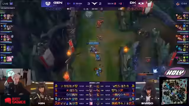 03:46:32Gen.G. startet den Nashor, doch Damwon greift an und der Fight entbrennt. Smash von Damwon spielt einen entscheidenden Klon, um die Welle zu stoppen und rettet so das Spiel. Ruler von Gen.G. macht entscheidende Fehler, die seinen Teamkollegen ihre Guardian Angels kosten. In einem dramatischen Finale opfert sich Chovy für den Nexus, doch es reicht nicht. Damwon Kia gewinnt das Spiel und damit die Serie nach einer beeindruckenden Aufholjagd.