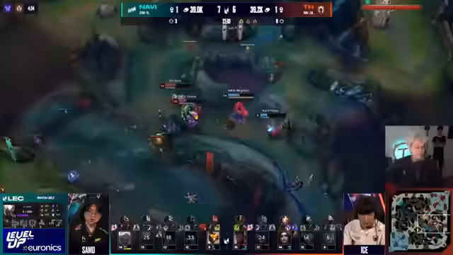 07:39:35Das Spiel nähert sich dem Ende. Caps als LeBlanc ist extrem gefahrlich und sucht gezielt nach isolierten Gegnern. Die Item-Builds der Spieler werden analysiert. Ashes Build mit Kraken Slayer wird als effektiv angesehen, während Panthons defensiver Build mit Death's Dance diskutiert wird. Die Entscheidung über den Nashor steht bevor und wird wahrscheinlich das Spiel entscheiden.
