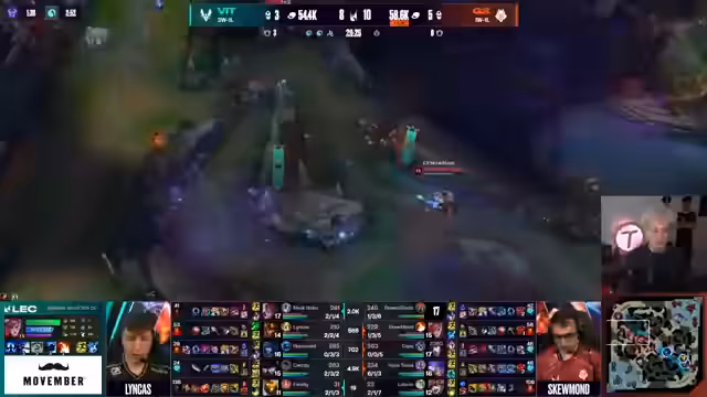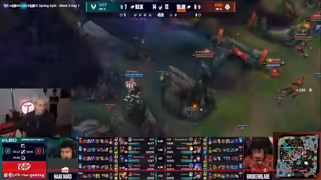 07:02:52Nach einem extrem langen und umkämpften Spiel, das 54 Minuten dauert und das längste der bisherigen Saison ist, gewinnt Vitality schließlich. Humanoid von Vitality wird für seine entscheidenden Lissandra-Plays gelobt, die das Game für sein Team entschieden haben. G2s Verlust wird mit dem Thema 'Nash ist useless' und 'verlorenem Map Control' begründet.