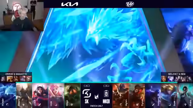 10:08:31Die Diskussion beginnt mit der Analyse des Drafts für Game 1. SK Gaming wählt Lulu für den Bot-Lane-Support, während Mobile Star Koi (MSK) Nami pickt. Der Fokus liegt auf den Picks für die Mid-Lane: MSK hat Viktor, während SK Lida, der Zed, Echo und Diana zur Verfügung hat. Kommentatoren vermuten, dass Echo eine gute Wahl gegen Viktor ist, da er als AP-Assassin wirkt. Allerdings wird darauf hingewiesen, dass Viktor stark ist, wenn er sein Rohr-Protoweltbild bauen kann. SKs Draft wird als Versuch gewertet, auf den Mobystar zu skalieren und ihn zu schützen.