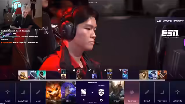 03:54:14Damen und Wohlverdienst ist es gelungen, nach 17 verlorenen Best-of-Three-Serien endlich wieder ein Spiel gegen Gen.G zu gewinnen. Das Team besiegte Gen.G mit 2-0 und beendete damit eine schmerzhafte, fünfjährige Niederlagenserie. Besonders der Jungle-Spieler Zivo wurde als entscheidender MVP gefeiert, der mehrere Teamfights für sein Team gewann. Dieser Sieg hat für das Team einen enormen psychologischen Wert und verändert die bisherige Storyline.