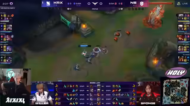00:17:56Das Early-Game ist im Gange. Der Streamer kritisiert KDRX's ADC 'Lazyfeel', der in der Laning-Phase gegen 'Lehends' und Taeyun bereits einen Summoner verloren hat. Die Vision-Kontrolle der Bot-Lane ist entscheidend, und der Streamer erklärt, wie die Sweep-Lens von Nongshim es für KDRX schwierig machen, Fähigkeiten wie Anivias E-Wall gezielt zu platzieren. Die Drache- und Rift-Herald-Kämpfe werden als wichtige zukünftige Ziele identifiziert.