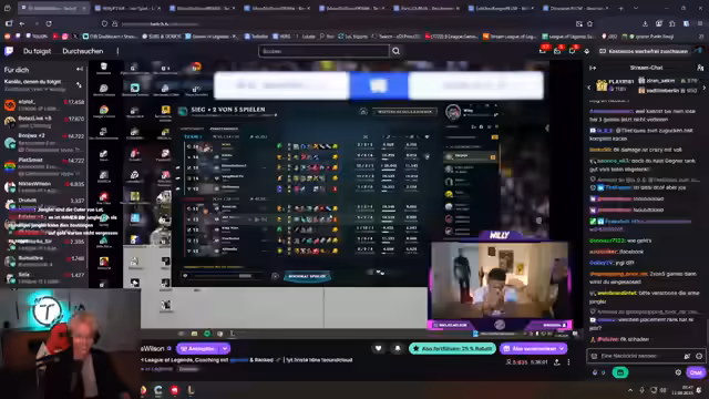 01:59:30Der Streamer fragt nach dem Item-Build und der Coach empfiehlt das blaue Item Cosmic Drive und die Navori Flickerblades als Standard-Items. Danach soll man je nach Bedarf Magic Resistance oder physische Reduktion kaufen. Der Coach wundert sich über die niedrigen FPS des Streamers in Teamfights und fragt, ob er über die CPU streamt. Der Streamer bestätigt dies und der Coach bietet an, ihm zu zeigen, wie man auf die Grafikkarte wechselt. Es wird diskutiert, warum viele Leute sagen, dass Ranked das Spiel verderben wird. Der Coach erklärt, dass League of Legends ein Spiel ist, das man lieben und schlechtreden kann. Es hängt davon ab, wie man an die Games herangeht. Wichtig ist der Wille, besser zu werden. Ranked ist langfristig fairer als Normal Games, da man mit der Zeit auf Gegner des gleichen Niveaus trifft. Smurfs können jedoch ein Problem sein. Der Coach gesteht, dass er auch schon gesmurft hat, zum Beispiel in Korea, um gegen Pro-Players zu spielen. Es wird die Bedeutung von Geister-Entzünden betont und eine Mechanik erklärt, bei der man mit der Ult von Volibear die Ult von Mordekaiser innerhalb von 0,75 Sekunden kontern kann, um 50 Subgifts zu gewinnen.