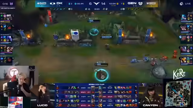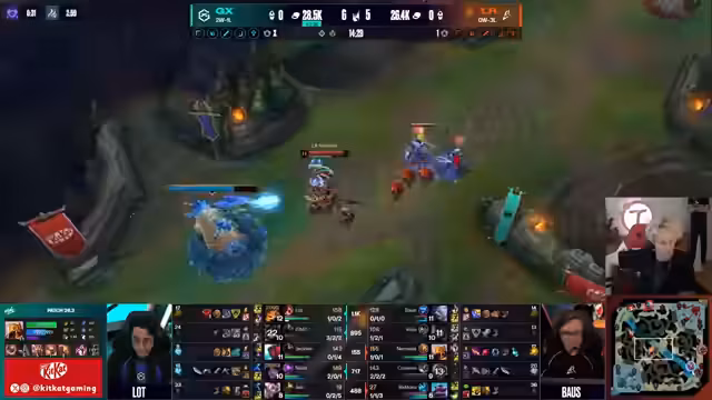 01:35:12Das Game beginnt mit einem intensiven Duell in der Bot-Lane. Gen.Gs AD Carry Keria auf Varus agiert dominant, während Deep Plus' AD Carry Smash auf Corki versucht, sich zu behaupten. Der Jungler Canyon von Gen.G schaltet sich früh ins Geschehen ein und zwingt den Gegner zu einem frühen Rückzug. Der Kommentator analysiert die Champion-Interaktionen, die Gegenmaßnahmen wie Mikael's Crucible gegen Varus Poke und den strategischen Wert von Teleport für Varus im Vergleich zu On-Hit-Builds. Der Fokus liegt auf der争夺 der Lane-Priorität und dem kontrollieren der Wellenbewegung.