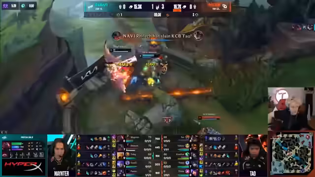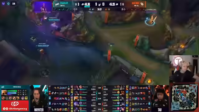 06:58:25Das Spiel gegen Ende hin ist geprägt von riskanten Entscheidungen und gierigem Spielverhalten von Navi, das zu Goldvorteilen führt. Aktionen wie der verlorene Drake, aber auch der erfolgreich gestohlene Nashor werden im Detail besprochen. Die Synergien zwischen den Champions, wie Jarvan IV und Azir, werden als entscheidend für die Teamkämpfe bewertet. Der Fokus liegt auf der klaren Überlegenheit von Navi in der Schlussphase.