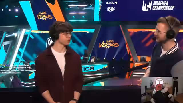 06:26:25Im Interview nach dem Spiel bewertet Noah den Start der LEC-Saison positiv, trotz der Niederlage. Er betont, dass sich das Team erst noch finden muss und sein Fokus auf den Spielen liegt. Der Streamer fragt ihn nach dem Vergleich zwischen Scrims und offiziellen Spielen, woraufhin Noah antwortet, dass er auf der Bühne performt, auch wenn er in Scrims gute Stats hat. Er beschreibt sein Gameplay als kämpferisch und mit einem Killer-Instinkt, der es dem Team erlaubt, in engen Situationen zu siegen, auch wenn er dabei riskante Aktionen unternimmt.