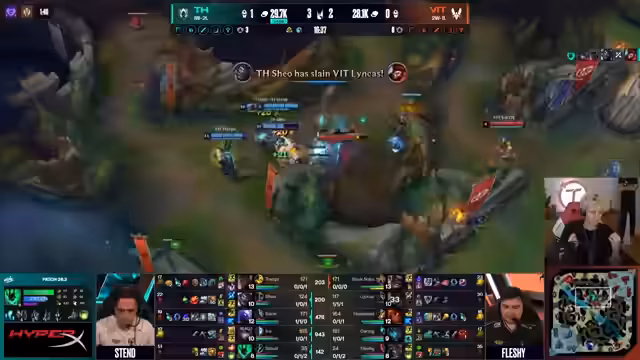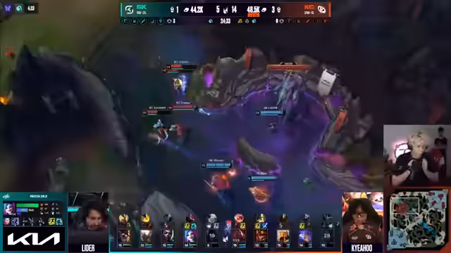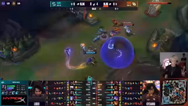 00:13:48Die Kritik richtet sich vor allem gegen DNS, insbesondere gegen Piyosik. Sein Item-Build mit Mercury Treads für Hekarim wird als hochgradig ineffektiv und fehlerhaft angesehen, da es den Power Spike stark verzögert. Trotzdem führt ein glücklicher und unkoordinierter Fight, den HLE gewinnt, zum entscheidenden Punkt im Spiel. Das Spiel kippt endgültig, als HLE einen 4-für-1 Trade erzielt und gleichzeitig den Draken sichert, woraufhin DNS aufgibt.