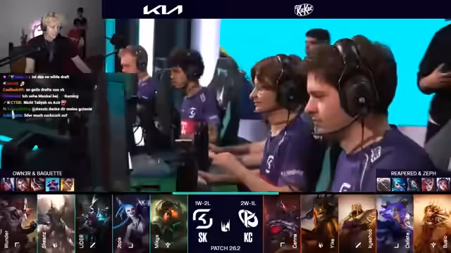 09:38:51Zu Beginn des Streams wird das Spielverhalten der Teams kritisch hinterfragt. Der Kommentator ist sichtlich enttäuscht von der Performance eines Spielers, der als der Beste des Teams galt, aber versagt habe. Er bewertet das Game als enttäuschend und stellt fest, dass nur der Top-Laner seine Lane dominiere, während alle anderen Teammitglieder litten. Trotzdem sieht der Kommentator für SK Gaming die Qualifikation für die Top 8 als gesichert an. Er prophezeit, dass Teams wie Lost Atons, KC Blue und Rhetics ausscheiden werden, auch wenn Retics ihr letztes Spiel gewonnen hätten. Die Skepsis gegenüber SKs Performance in der Play-off-Phase ist offensichtlich.