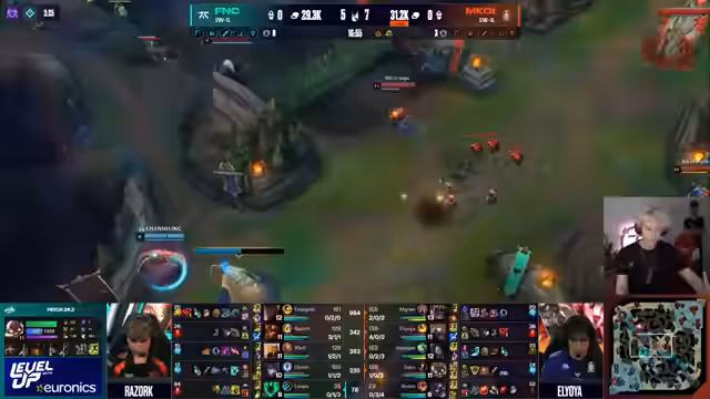 08:51:25Das Spiel entwickelt sich zu einem Kampf mit hohen Einsätzen. Labrov führt einen herausragenden Engage mit Rakan durch, was zu einem schnellen Turnier führt. Caps zeigt beeindruckendes Movement, indem er mit einem Flash-Fokus einem Kampf entgeht, während Nuclear in Gefahr gerät. Die Kombinationen sind entscheidend, besonders die Zusammenarbeit zwischen den Rollen, die auf der Karte aktiv sind und ihre Quests effizient erledigen. Die Defizite werden sichtbar, als ein frühes 6000 Gold-Defizit entsteht und ein fehlgeschlagener Teleport-Spielzug die Situation verschärft.