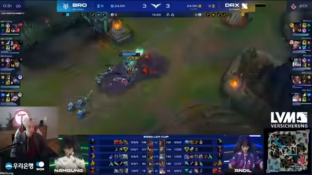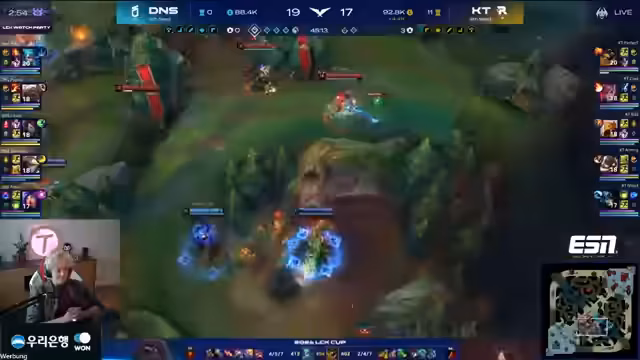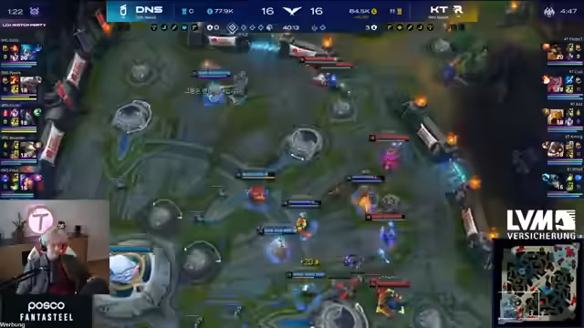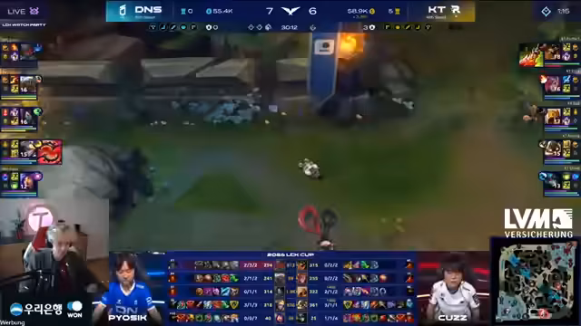 03:57:07Das Spiel wird als das längste im LCK-Cup bezeichnet, mit einer Spielzeit von 49 Minuten und 35 Sekunden. Die Kommentatoren sind verblüfft über die Länge und die komplexen, sich ständig ändernden Dynamiken des Spiels. Insbesondere KT wird kritisiert, obwohl sie eine starke Late-Game-Komp mit BDD als Azir und Korke besaßen. Sie konnten ihr Spiel trotz erheblicher Vorteile, wie Baron und mehr Strukturen, nicht abschließen, was als extrem frustrierend und als Missmanagement bewertet wird.