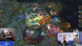 04:11:17KT entscheidet sich letztlich für die Bard-Lulu-Kombination, um die Mid-Lane zu stärken. Die Kommentatoren sehen dies als eine starke Wahl, da die Power-Picks Azir und Jinx in der Mitte sehr gut zusammenarbeiten. Die Bot-Lane wird jedoch als sehr schwierig eingeschätzt, da Caitlyn ohne den idealen Support in der Defensive steht und möglicherweise nicht skalieren kann. Ghost mit Bard muss nun erfolgreich roamen, um das Team zu unterstützen.