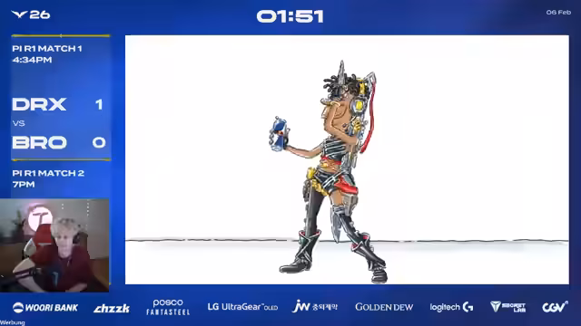 02:02:55Im entscheidenden Fight machen die 'Bros' mehrere, als 'blöde' beschriebene Fehler. Ein missglückter Chase-Down von 'Gideon' führt dazu, dass er vier Leute mit in den Tod reißt. Zudem wird kritisiert, wie 'Aatrox' einen 'Teleport' spät in den Fight reinkommt, anstatt ihn zur Sicherung des Turms zu nutzen. Diese Fehler führen dazu, dass DRX den Fight und somit das Spiel verliert und aus dem Turnier ausscheidet.