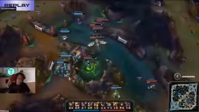05:53:42In einem aussichtslos erscheinenden Spiel beschreibt der Streamer die Rolle des Vladimirs als Frontliner, da das Team keine echte Frontline hat. Trotz eines 4-13 Standes und eines sehr starken gegnerischen Dravens besteht Hoffnung, indem man mit den sechs Goobies und dem Herald versucht, wieder ins Spiel zu kommen. Der Ocean Drake, der ständig Teamfights zugunsten des Gegners beeinflusst, wird als problematisch und frustrierend beschrieben. Das Ziel ist, den Top-Turm zu verteidigen und das Spiel zu skalieren.