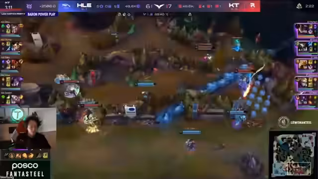 Die Serie zwischen Hanwha Life Esports und KT Rolster bot spektakuläre Momente. Nachdem HLE Game 1 holprig, aber letztlich sicher für sich entscheiden konnte, sorgte ein früher Lane-Swap im zweiten Spiel für Turbulenzen. KT profitierte davon, während ein ungewöhnlich schwieriger und schneller Mid-Lane-Fight die Begeisterung der Kommentatoren entfachte.