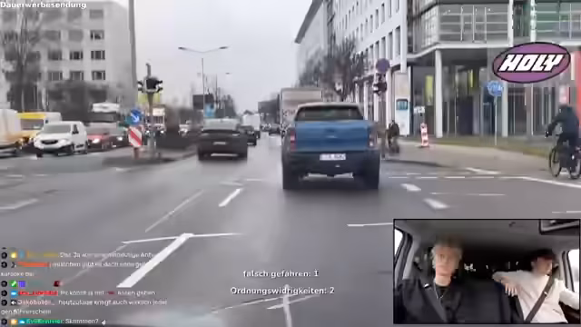 02:35:11Die Ankunft in Karlsruhe steht kurz bevor. Der Streamer erwähnt, dass es neue Audis in der Nähe gibt und dass der Treffpunkt für die Abholung von Kani am Hauptbahnhof ist. Nach kurzer Suche wird Kani, der mit einem kleinen Koffer winkt, am Straßenrand gesichtet. Das Team hält an, um ihn aufzunehmen und die Reise fortzusetzen.