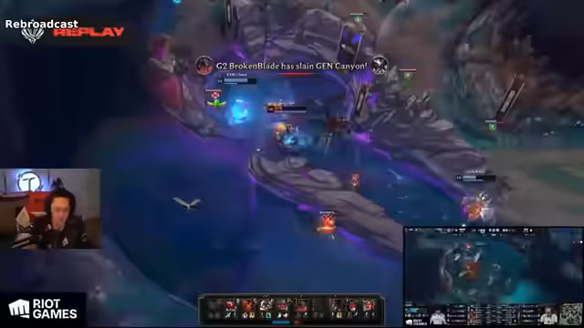 01:20:30G2 nutzt einen cleveren Teleport-Advantage von Broken Blade, um in der Top-Lane einen Kill gegen Gen.G.s Alistar zu erzwingen. Die Entscheidung, einen Drachen fighten zu wollen, obwohl die Gegner swappen, wird kritisiert, da die Gegner so einen XP-Vorteil am Drake erlangen. Dennoch nutzt G2 den gewonnenen Fight, um den Draken zu kontrollieren und den Druck auf dem Map aufrechtzuerhalten. Ein riskanter, aber letztlich erfolgreicher Zug.