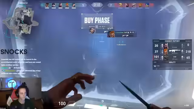 07:48:50Nach einem gescheiterten initialen Plan auf der A-Seite unternimmt das Team einen Gegenangriff. Der Streamer schießt auf mehrere Gegner und beschädigt sie erheblich, insbesondere den Sage und den Breach. Trotz dieses Erfolgs wird der Streamer selbst eliminiert, was zu einer kritischen Situation führt. Das Team muss seine Positionen neu bewerten und plant einen strategischen Rückzug oder Rotierung, um in die nächste Runde zu gehen.