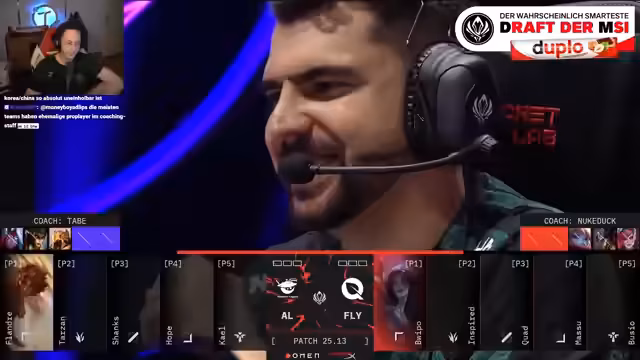 10:29:36Die Kommentatoren bewerten die beiden Teams intensiv vor dem ersten Spiel. Tarzan, der Jungler von Anyone's Legend, wird als eine der führenden Persönlichkeiten des Jungler-Roles gelobt, der nach sechs verlorenen Finals endlich seinen ersten Titel in der LPL gewonnen hat und nun bei seinem ersten MSI antritt. Sein Gegenüber, Inspired von FlyQuest, ist als erfahrener Spieler mit vielen Titeln in Europa bekannt, der jedoch bei internationalen Turnieren, wie der nahen Worlds-Niederlage gegen Gen.G, noch nach einem großen Erfolg sucht. Das Matchup zwischen den beiden wird als hochspannend und prägend für den Spielverlauf angesehen.