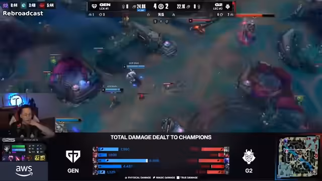 03:09:38G2 versucht im Verlauf des Spiels aktiv, Fehler der Gegner zu erzwingen, indem sie permanent den Kampf suchen. Dies ist eine bewusste Strategie, um die Überlegenheit von Gen.G zu durchbrechen, und führt zu mehr engen Spielen, als zunächst erwartet. Der Kommentator lobt diesen verbissenen Kampfgeist, da die meisten Teams in der LCK Gen.G meist passiv den Lauf lassen. Trotz der Anstrengungen bleibt die Herausforderung, genügend Schaden zu generieren, insbesondere auf Seiten des Carries.