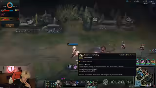 02:12:03Der Streamer steht vor einer schwierigen "Base"-Situation mit nur 400 Gold und ohne Platten. Er möchte Thornmail nicht sofort ausbauen, sondern ein Ending, hat aber nicht genug Gold dafür. Trotzdem wird Thornmail als sinnvolle Option betrachtet, da es Tank-Stats und Rüstung gegen AD-Champions wie Twitch und Nafiri bietet. Es wird jedoch bedauert, dass die "Base" sich "terrible" anfühlt und Thornmail nicht das bevorzugte Rush-Item wäre. Die Irelia-Situation wird erneut aufgegriffen, da sie immer noch kein Blade hat und weiterhin Platten verlieren wird. Das Spielgeschehen wird als "crack" bezeichnet, da Irelia versucht, sich zu gruppieren, aber dabei Platten verliert und an Minions stirbt.
