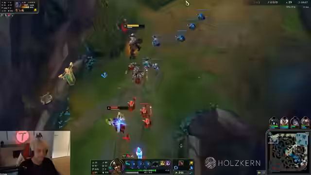 01:04:59Der Spieler diskutiert die Wahl zwischen Mordekaiser und Yorick als Bassisten und bemerkt, dass drei Pentacle-Champions im Spiel sind. Er plant einen Dive auf Level 6, sobald die nächste Wave eintrifft, um die Limits auszutesten. Trotz eines guten CS-Vorsprungs und der Möglichkeit, einen Kill zu erzielen, stirbt der Spieler nach einem misslungenen Tower-Dive. Er reflektiert über den Fehler, seine 'Washedness' (mangelnde Übung) nicht einkalkuliert zu haben, was den eigentlich korrekten Play zunichtemachte. Er erwähnt, dass er derzeit mehr Solo-Q spielt, da er keinen Liga-Betrieb hat, und hofft, dadurch wieder besser zu werden.
